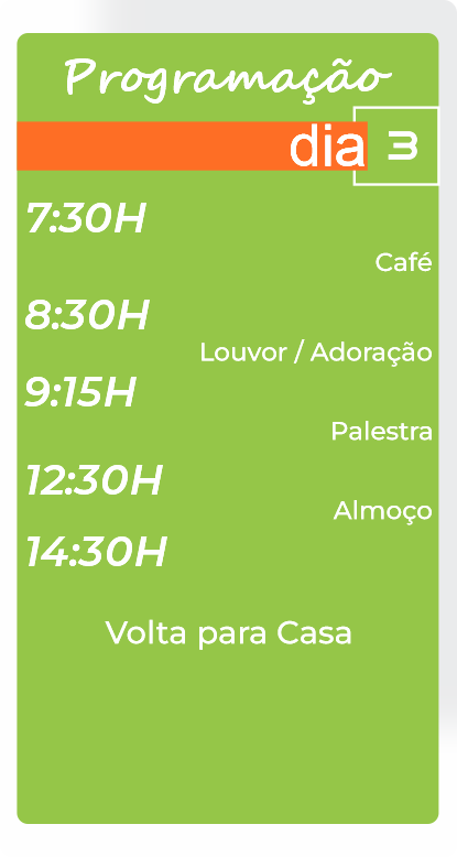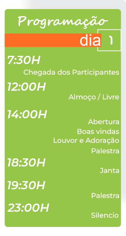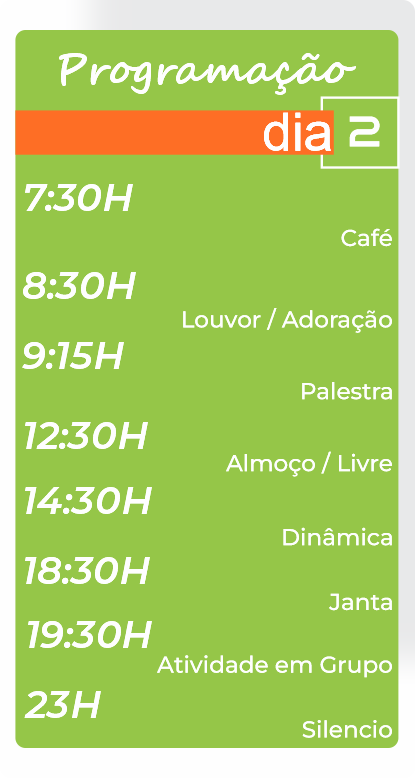 O SIGA Imersão acontecerá em dois dias, sendo o 1º somente no período da noite e o 2º nos períodos manhã, tarde e noite. Os participantes serão impactados pelas palestras ministradas, que objetivam profunda reflexão sobre posicionamentos em relação à si, ao próximo e a Deus, bem como reavaliação de princípios e valores, trazendo Luz para uma reorganização de sua vida, a fim de que a possa desfrutar plenamente, experimentando a boa, agradável e perfeita vontade de Deus.